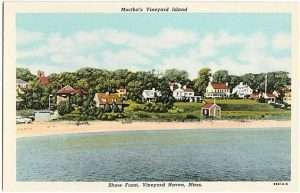 Thank goodness I’ve been collecting Martha’s Vineyard ephemera for years since these old postcards helped me bring the book’s settings alive. They’re not all from 1942 when the Smith girls’ story takes place, but close enough. They include the old Bayside Club (which was called The Bay) in Vineyard Haven on the corner of Main Street and Owen Little Way (my mother’s best friend Betty Cottle, inspiration for Bess Stanhope in the book, used to waitress here). The club members played tennis and used a waterfront recreation center known as the Bayside Casino.