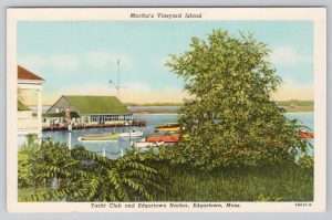 Thank goodness I’ve been collecting Martha’s Vineyard ephemera for years since these old postcards helped me bring the book’s settings alive. They are not all from 1942 when the Smith girls’ story takes place, but close enough. They include the old Bayside Club (which was called The Bay) in Vineyard Haven on the corner of Main Street and Owen Little Way (my mother’s best friend Betty Cottle, inspiration for Bess Stanhope in the book, used to waitress here). The club members played tennis and used a waterfront recreation center known as the Bayside Casino.
