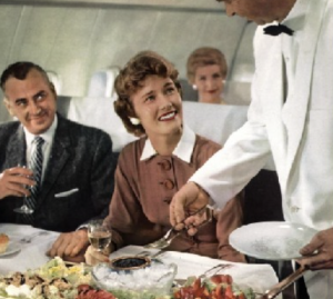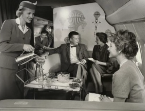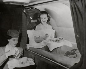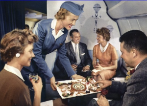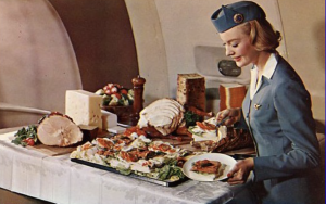 It was so much fun writing the 1950s chapters of The Golden Doves especially the flight the French character Arlette takes, President Class on Pan Am. I loved taking a deep dive into what Pan Am flights were like at the time and let’s just say the meal service may have slipped a little. As I get ready to go out traveling on book tour for Doves, I have a feeling I won’t be dining like this at 35,000 feet. Enjoy this little trip back to the 1950s when you could enjoy a little caviar (and a private breakfast in bed) in the air.