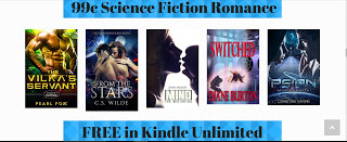 will be available for one day only for 99c on an Amazon Countdown Deal. It is also part of a special promotion of science fiction and fantasy romance organized by Lisa Blackwood.