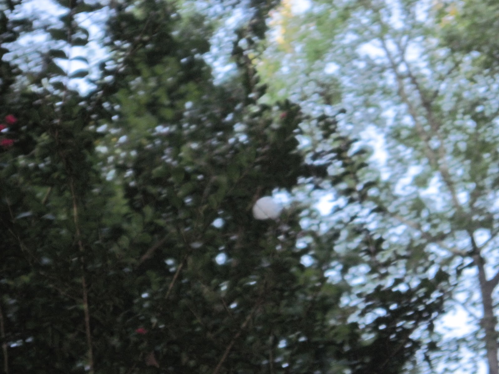A close-up of the wiffle ball. (No, I don't have shaky hands.)It was getting dark. So I appealed to a higher authority and went to get my mom.I have an awesome mom. She came out with the branch cutter.