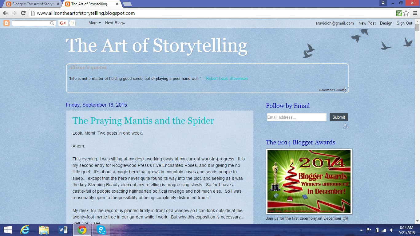 Happy birthday, little blog! It has been exactly one year since the first post. Between then and now, I've learned so much about writing, and also a little about blog design, which is why the Art of Storytelling has a brand new look! Shout-out to Hannah Williams for artistically critiquing the header. It looks much better after her advice.