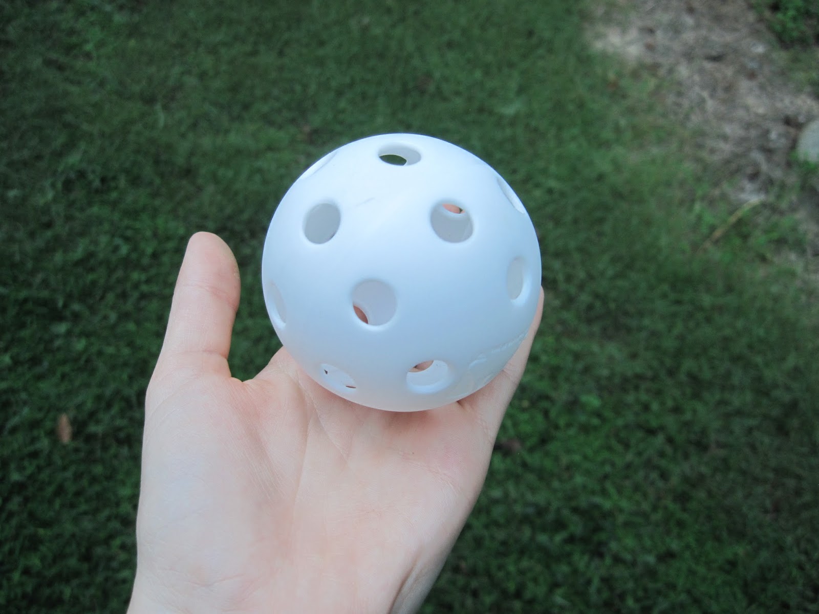 A close-up of the wiffle ball. (No, I don't have shaky hands.)It was getting dark. So I appealed to a higher authority and went to get my mom.
