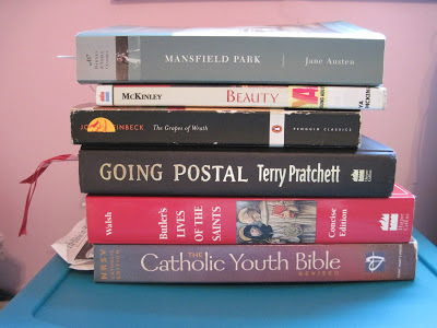 The Lives of the Saints, edited by Michael Walsh: I'm being confirmed in the spring, so I need to pick a patron saint. I always assumed that I would choose Saint Thomas Moore, but now I'm not so sure. So I'm frantically skimming this book, trying to find my ideal saint.