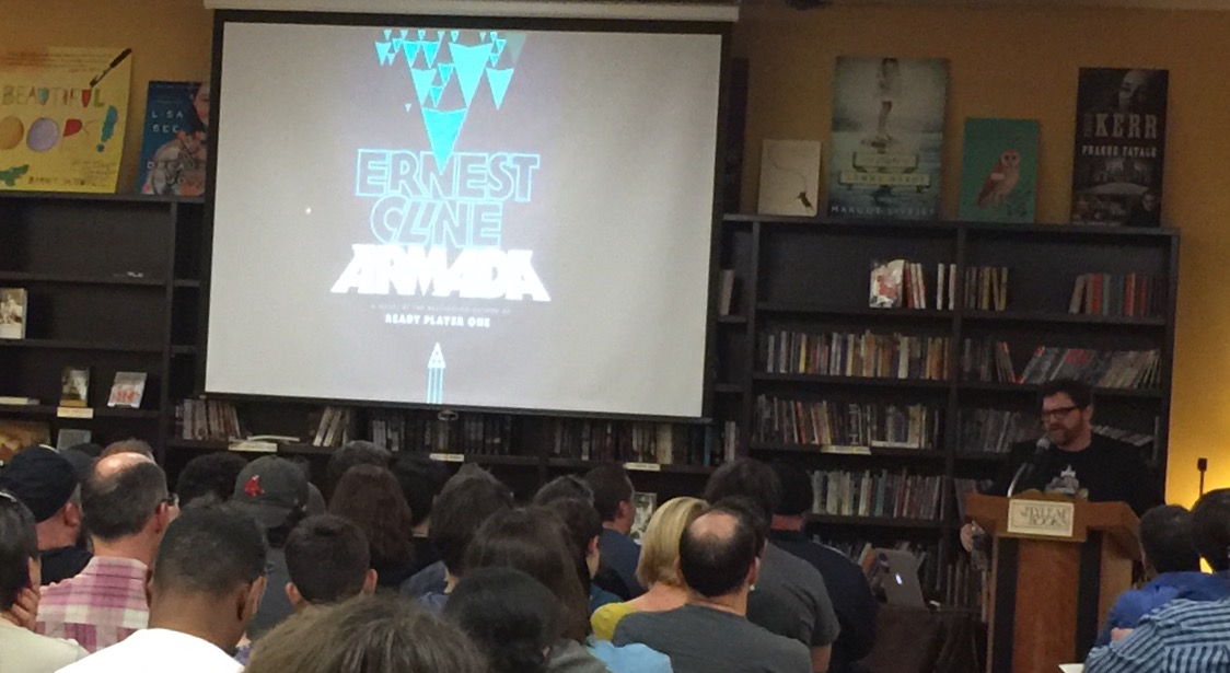 Cline told his "origin story". He grew up on a farm in the 80's in the same pop culture I did. He wrote a sequel to Buckaroo Banzai for fun. He wrote a movie entitled Fanboys about being a huge Star Wars nerd...and it got made! He wrote RPO, then sold the rights for both the novel AND the film within a 48-hour period! He set up a brilliant scavenger hunt contest with clues in his book but didn't tell anyone until the eve of its paperback release. The grand prize was a DeLorean. Stephen Spirlberg's directing the RPO movie. His second book, Armada, is a bestseller right now.