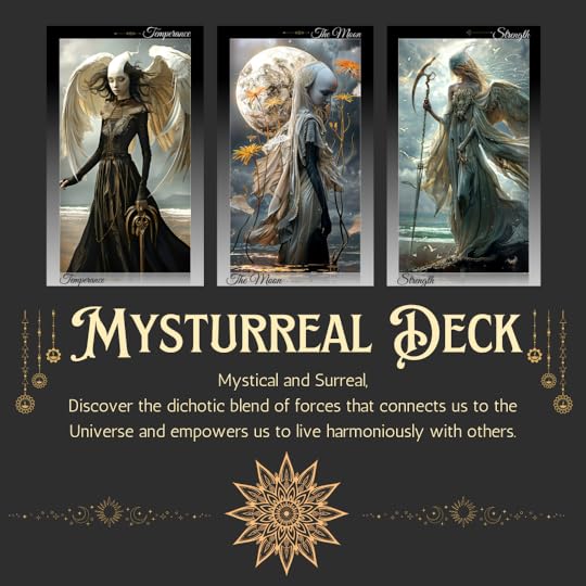 I am blessed to present “Mysturreal,” a unique and diligently crafted tarot deck with a mystically surreal theme brightened with light. Each of the 78 cards is portrayed as a journey of spiritual empowerment, filled with love, balance, and a deep sense of divine guidance highlighting the blessings of introspection while encouraging a harmonious connection to the world and others.The vision behind the Mysturreal Tarot Deck is rooted in the belief that within each of us lies a rich tapestry of light and shadow, beauty and mystery, power and grace. We are a harmonious blend of these forces, and by embracing them, we awaken our true potential. When we focus our thoughts, words, and actions on the radiant aspects of positivity, we ignite the power within to manifest our dreams and shape a brighter world—not only for ourselves but for all those whose lives we touch. In this balance of energies, we discover the magic that connects us to the universe and to one another.[image error] [image error] [image error]78 Unique Cards: Each card is a work of art rich in symbolism and imaginative detail.Original Artwork: Inspired by the mystical, surreal, and Fae influences, creating a truly unique art style.High Quality: Decks will be available in 330gsm Premium smooth stock.Size: 4.72 x 2.55 inches / 12 x 6.5 cm[image error] [image error] [image error] [image error]