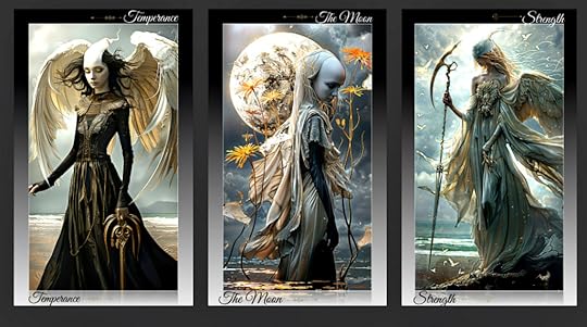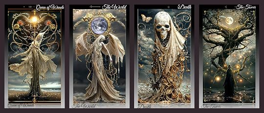 I’ve always been interested in the artwork for tarot cards. Mystical, a little, dark, haunting, but at the same time extremely beautiful, the artwork of cards I’ve seen in the past have always captured my imagination. Then, one afternoon, I was working on a prompt in Midjourney to create a mystically surreal character image, one that is both beautiful, haunting, surreal and slightly grotesque, yet filled with light. The results literally made me sit back in my chair (which I never do, cuz I’m short and can’t reach if I do!)