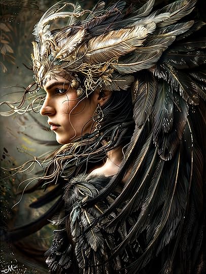 The People of the Raven are a mysterious, nearly forgotten race of Feyfolk; their existence is whispered about in the southern lands of Jyndari but scarcely believed. They dwell in the remote, windswept expanses of Vrynnyth Gahl, the Northern Territories, where the land is as wild and untamed as its inhabitants. Rugged mountains blanketed in mist rise like sentinels, their jagged peaks piercing the sky. Ancient forests cling to the hillsides, their dense canopies filled with the whispers of the wind, while deep valleys cradle dark, pristine lakes reflecting the hues of the ever-changing sky. The land feels alive, imbued with a potent magic that hums through the air as if Vrynnyth Gahl itself breathes with the rhythm of the Feyfolk who call it home.