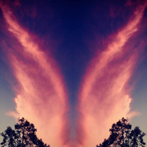 This is too beautiful not to share, this is a photo I took of a pink cloud at sunset, to me it looked like an angel wing, so I mirrored the image so the angel could fly!