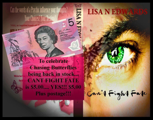 To celebrate Chasing Butterflies being back in stock we are offering Can’t Fight Fate, the 1st book in the Trilogy for $5.00 plus postage! http://shop.cantfightfate.com.au/Cant-Fight-Fate-9781925341058.htm