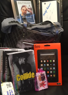 This year's silent auction basket contains books 1-5 of Charity Parkerson's Hard Hit series autographed, a Kindle Fire, two small swag bags, a carry-on, a Novel Experience t-shirt autographed, and cover art for her upcoming book Clinched signed by the cover model Ryan "Stacks" Harmon and the author. Bidding starts at $150.00 USD and whoever has the highest bid on May 1st wins.