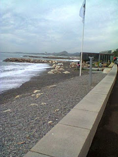 People on the Côte d'Azur generally don't expect anything else but glorious sunshine. When things are different they are very ill prepared. I never check the weather forecast; I carry an umbrella and a pair of sunglasses in my bag, what else can possibly happen here? Most people only carry a pair of sunglasses; it never rains, right? So it was no small surprise that cafe owners were again totally caught on the hop when the first storm of the autumn season hit. Work crews were busy, this morning on the beach salvaging decking, chairs and potted palm trees from the beach fronts.