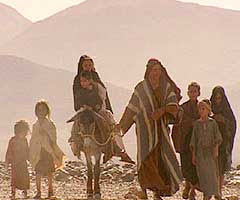 The Traditional Flight to EgyptThe image above has bought into the two-year-old Jesus theory, for there he is, on Mary's back being carried to Egypt. I would think that he could do much of the walking himself, but you probably know what two-year-olds are like. But what about Joseph's other children: four boys and two or three girls? It would have been quite dangerous to leave his other children behind, with a paranoid maniac on the throne in Jerusalem. Even if Joseph could squirrel them away in Nazareth, that would not be safe enough. And with the haste to get out of town, there would be little time for making other plans. No, Joseph needed to bring his whole clan along to keep them out of the clutches of King Herod.