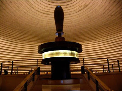 This is the Shrine of the Book in Israel, which was built to display the Great Isaiah Scroll. However, some deterioration in the scroll was noted due to its exposure to light. One of the seven facsimile copies is on display there now.