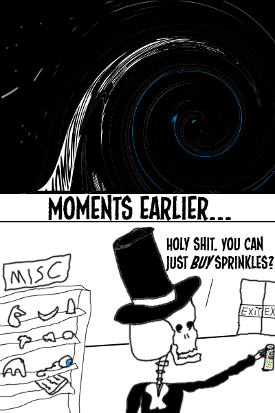 Hey, ya'll! I've been invented to join the beeworks community on the condition that I stop drawing so many skeletons because they are spooky and scare the people at hiveworks. So from now on, my comic shall bo called Apes! and will be found at Apes!.comic.com and will feature Apes! instead of skeletons.
