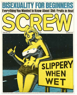 Much of BENEATH CONTEMPT then deals with Goldstein's creation of SCREW, a local New York sex paper that ran from 1968-to the early 2000s (his former employees restarted it in 2005). Goldstein eventually became a millionaire, an amazing feat considering SCREW was mainly sold in Manhattan and major cities: he would appear in court several times for sending the paper to some middle-America states on the charge of "distributing obscene material." His court cases have become legendary (during one of his divorce trials, he wore a t-shirt that said "Death Before Marriage"), and his language and actions toward the judges were anything but civil. His anarchy-esque lifestyle made most rock stars jealous, and his sex hi-jinks (despite his unattractive mug and overweight body) dumbfounded all who knew him.