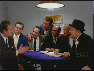 Leave it up to the lunatics at SOMETHING WEIRD VIDEO to find this lost gangster comedy and release it to the masses. This previously unreleased film stars the legendary JANE RUSSELL, who appears here in her last FILM role before doing a couple of TV shows in the mid 80s. Godfather Johnny Stiletto is played by Peter Savage, who went on to smaller roles in Martin Scorcese's TAXI DRIVER and RAGING BULL. But the fun here comes from Stiletto's six mob goons who are played by former boxing champions (Jake La Motta, Rocky Graziano, Willie Pep, Paddy Demarco, Tony Zale, and Petey Scalzio) who provide most of the films' bumbling antics, at times in BENNY HILL-style speed-ups. An opening fight scene between Stiletto's boys and another gang features Loony Tunes-type sound effects, creating a hilarious, old-fashioned slapstick brawl that had me in stitches. There are a few times during the film silly cartoon-sounds are used in place of people's words, one time nearly causing me to fall off the couch in hysterics.
