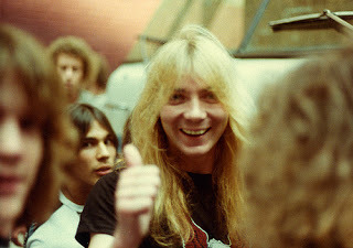 I didn't know if I should laugh or cry. I felt cheated. How could such a cool-looking guitarist (and handsome son of a bitch) sound so goofy? I looked on in disbelief as I remembered the stories former MAIDEN vocalist Paul Di'anno told about Murray in his autobiography, THE BEAST. Murray--who had been a mad party animal with wildman Di'Anno during many of his arrests and nights of pure debauchery--was speaking like a mentally challenged reject from ROMPER ROOM. My stomach sank to the lowest depths of the planet.