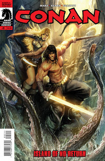 The second and final of the two-issue CONAN: ISLAND OF NO RETURN turned out to be a fantastic, classic-style Conan story, but as I mentioned in my last Comic Geek Update, Bart Sears' artwork is too sloppy and comical for such a finely written tale (PLEASE keep this guy away from our favorite Cimmerian, Dark Horse peoples!). Stjepan Sejic's cover art is beautiful, and this issue's story would've looked much better had he rendered the extreme violence and cave creature brawl. Looking forward to the regular CONAN: ROAD OF KINGS to pick up next month after a two month hiatus (and keeping my fingers crossed the long-awaited CONAN film doesn't suck!).