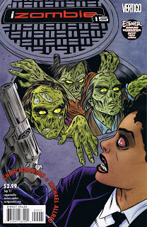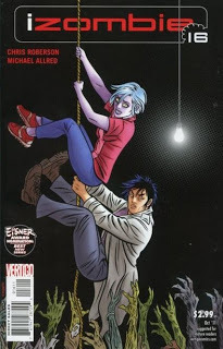 iZOMBIE issues 15 and 16 are basically the same thing--but that's not to rag them. Gwen and her monster-hunting boyfriend finally rescue the were-terrier from a cave that's full of zombies, and a couple of building side-plots with Gwen's ghost and vampire friends fill in the background quite nicely. I wasn't crazy about a four-paged mini-story started a couple issues ago called THE DEAD PRESIDENTS, but in these two issues they're actually a part of the main iZombie story. As long as Vertigo keeps this up I'll have no problem with it (they even used one of the DEAD PRESIDENT characters for issue 15's cover--see above). Issue 16 ends on a doozy that'll have zombie (and Gwen) fans drooling. Been loving this series since the first issue and it shows NO signs of slowing down.