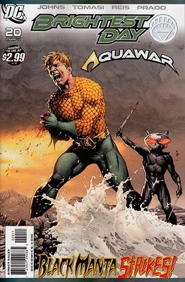 BRIGHTEST DAY # 19 & 20: DC's bi-weekly series really lets it rip with its 2 April offerings, both titled 'Aquawar.' In issue 19, Black Manta and co. show up with an army of those the White Lantern has released from the Bermuda Triangle (Aquaman even loses his hand during the fight). Issue 20 features Deadman attempting to understand why the White Lantern has allowed this evil outbreak just as Aquman and Jackson get some major help from Mera and Aquagirl (Mera shows some power here that'd give Dark Phoenix a run for her money!). While the whole 'Darkest Night / Brightest Day' saga may be getting a bit played, the non-stop action and fresh ways of using some classic heroes continues to make this a satisfying epic...