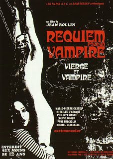 REQUIEM FOR A VAMPIRE (1971). First seen on American shores in the early 80s on Harry Novack's "Frightful Flicks" VHS series under the silly (and heavily edited) title, CAGED VIRGINS, this tale of two female fugitives seeking shelter at a castle that happens to be the home of a vampire cult features some great-looking scenes, including dungeons that could give anyone the creeps, amazing dusk-shot footage, and one disturbing shot of a vampire bat feeding on a captive's menstrual blood. Ground breaking and unforgettable.