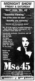 The 78th column in my SUBURBAN GRINDHOUSE MEMORIES series takes a look at a screening of Abel Ferrara's 1981 classic MS .45. Check it out here: MS .45