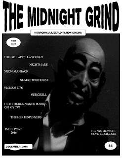 I've also edited an old school cult film fanzine titled THE MIDNIGHT GRIND, featuring all new articles from several fanzine legends and a couple of new comers. Release date in a couple of weeks. This is my first print-zine since 2003, and my first print film zine since 1991. I'll have ordering info here shortly...