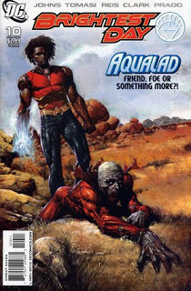 Meanwhile, Aqualad learns his parents aren't who he thought they were, and a genuinely creepy meeting with Black Manta and Siren goes down almost like a horror story; Aquaman shows up in the nick of time, meanwhile Firestorm turns back into the creature he had become in the DARKEST NIGHT series. Issue 11 can't come fast enough.