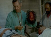 Watching it again after all these years was a real trip; the sheer brutality of the gore scenes border on the absurd, the Doctor's low-tech lab (that's actually the inside of a large shed on an island) had me cracking up, and the English overdubbing is as pitiful as any Godzilla film. I believe every horror fan (especially zombie completists) should see this at least once; it's another fine example of why 1979 was such a great year for horror films.