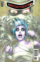 VERTIGO's retro-looking series i,ZOMBIE continues to be one of the more entertaining titles on the market. In issues 4 and 5, an ancient Egyptian prince/mummy named Amon begins to teach everyone's favorite zombie girl, Gwen, what she has become (and gives her lessons on the origins of various creatures). Meanwhile, the monster hunters manage to get vampire girl Claire (although there's a strange error in issues 4 and 5: in issue 4 she's spiked with a silver knife, yet they bury her in issue 5 with a wooden stake in her heart. Go figure!). Regardless, these two issues read quick and lead nicely into issue 6, which features the origin of Gwen's friend Scott (who's also a "were-terrier."). Scott tells the story of how his grandfather raised him following the death of his parents; when he gets older and leaves home and is bit by a dying terrier, only to have the dog's spirit enter his body and cause him to change into a were-terrier once a month during the full moon. Flashes to issues 4 and 5 are cleverly spliced in-between the narrative. What becomes of Scott's grandfather leaves room for lots of fun possibilities. Michael Allred's artwork is simple but clean, reminiscent of 50s and 60s comics (issue 6 is even printed on retro-styled paper). Lovin' this series to (un)death...
