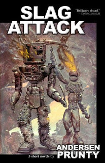 Prunty's latest is a 4-story "mini-epic" centered around an apocalypse that's brought on by slug-like creatures raining from the sky. These nasty critters (known as Slags) like to eat their way inside people and before turning their insides to mush, wreak havoc with their minds.