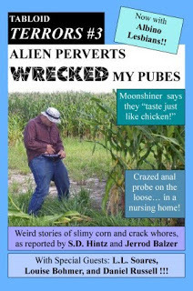 The third installment of this whacky series begins with S.D. Hintz' hysterical redneck crop-circle invasion (also titled Alien Perverts Wreckied My Pubes). I don't think I'll ever be able to look at a picture of a crop circle again without laughing my ass off! Next up, Louise Bohmer keeps the laughs going as 'Space Dildo Runs Amok in Nursing Home!' After a nurse from an old-folks home is abducted by...