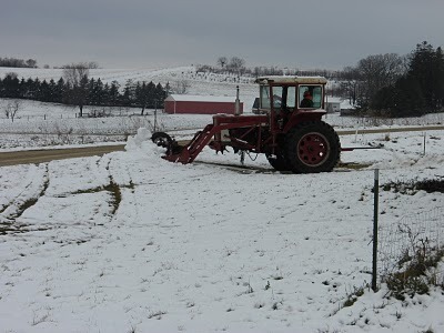 But before this can happen, Melissa must get the tractor from where it broke, out in the pasture, down to the shed where we store it, a place out of the wind where Craig can work.