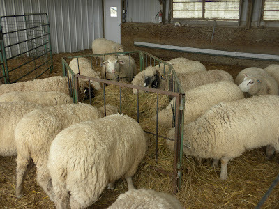 The sheep are milling about, telling me in no uncertain terms that being locked in the barn just isn't funny any more.