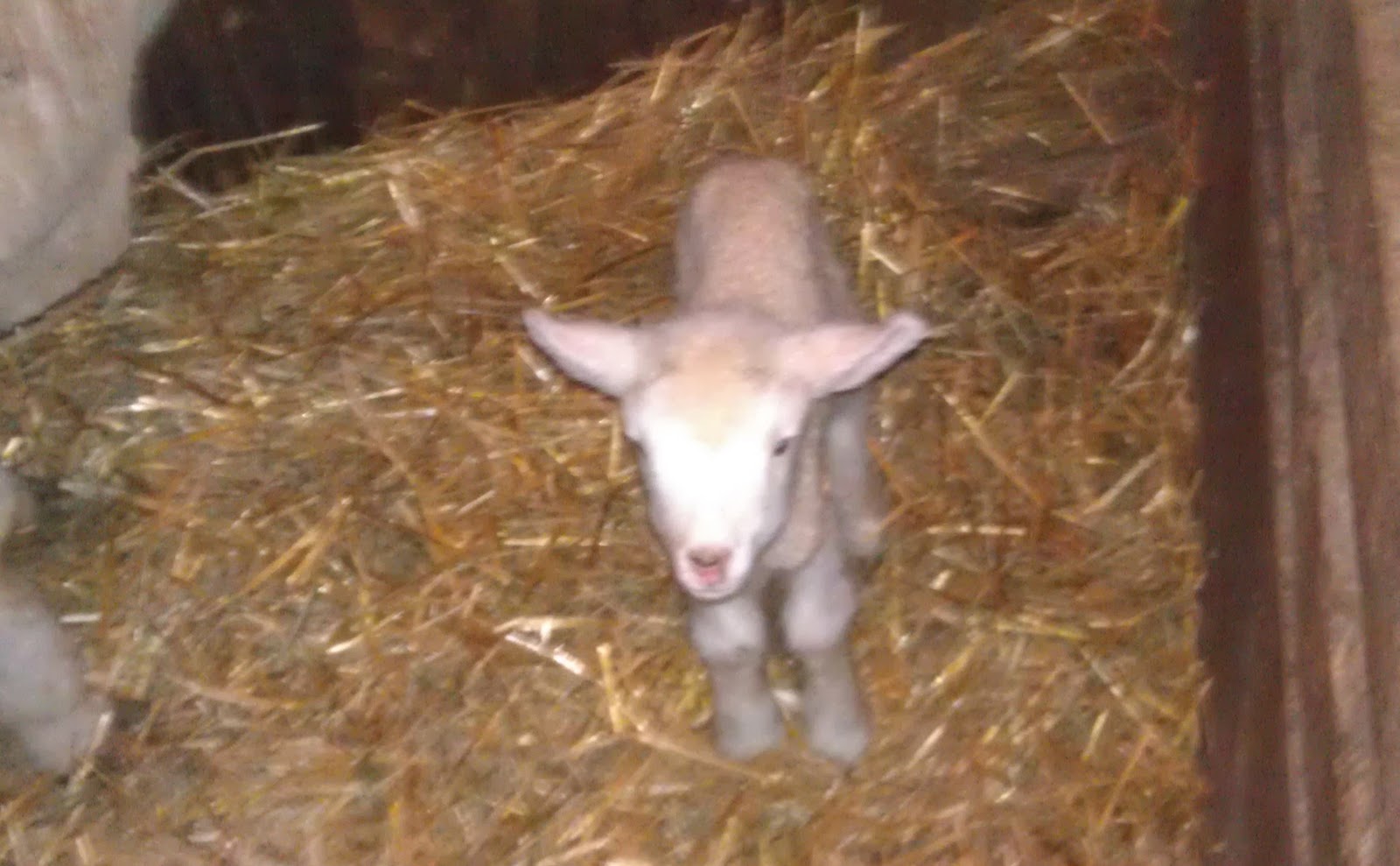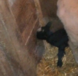 Turns out we were wrong. A week ago Drew's daughter found two lambs in the barn, one all white, one nearly all black. And they think another of the females is also 'in the family way.'