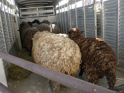 I wanted to update the rescued sheep and llama story (animals abandoned on nearby farm a month ago---we found homes for them.) Our friend Drew and his family took the sheep. When he got them home he sheared them. A fleece usually weighs 7-8 pounds. These fleeces weighed 30-40 pounds. That's how long it had been since the animals had been sheared.