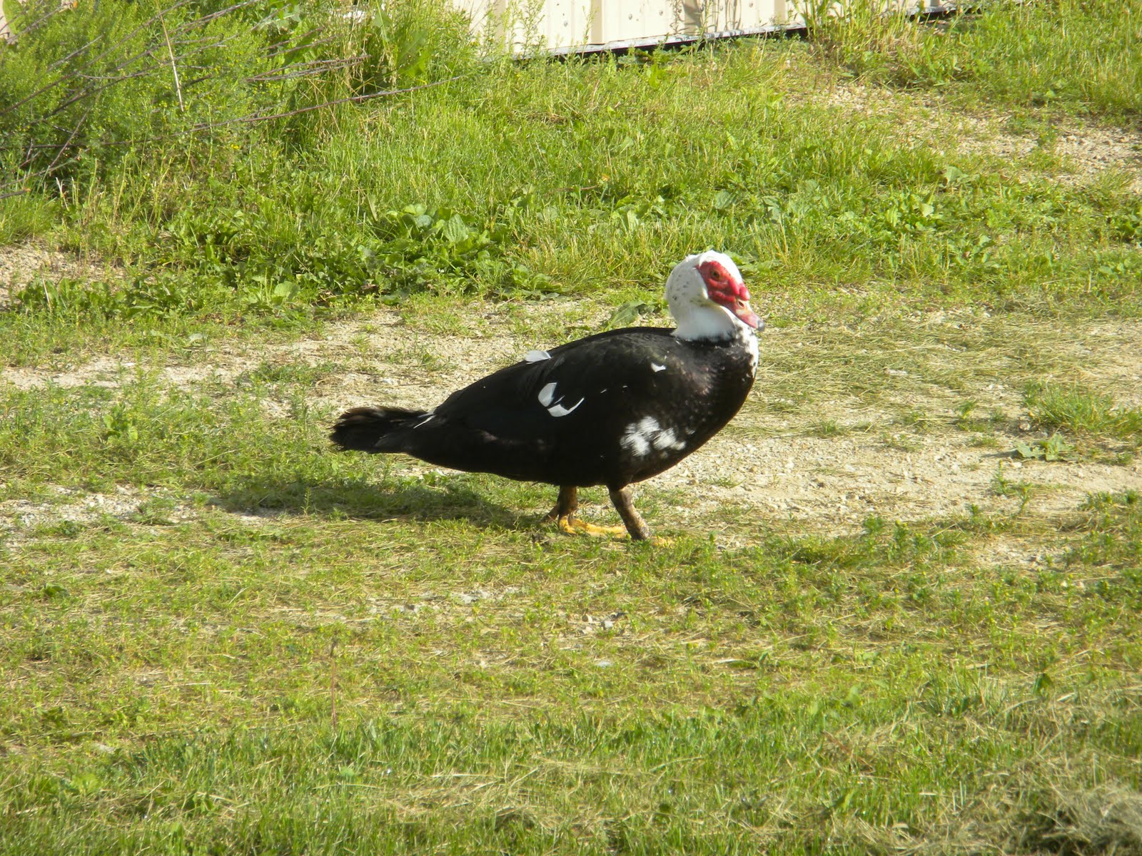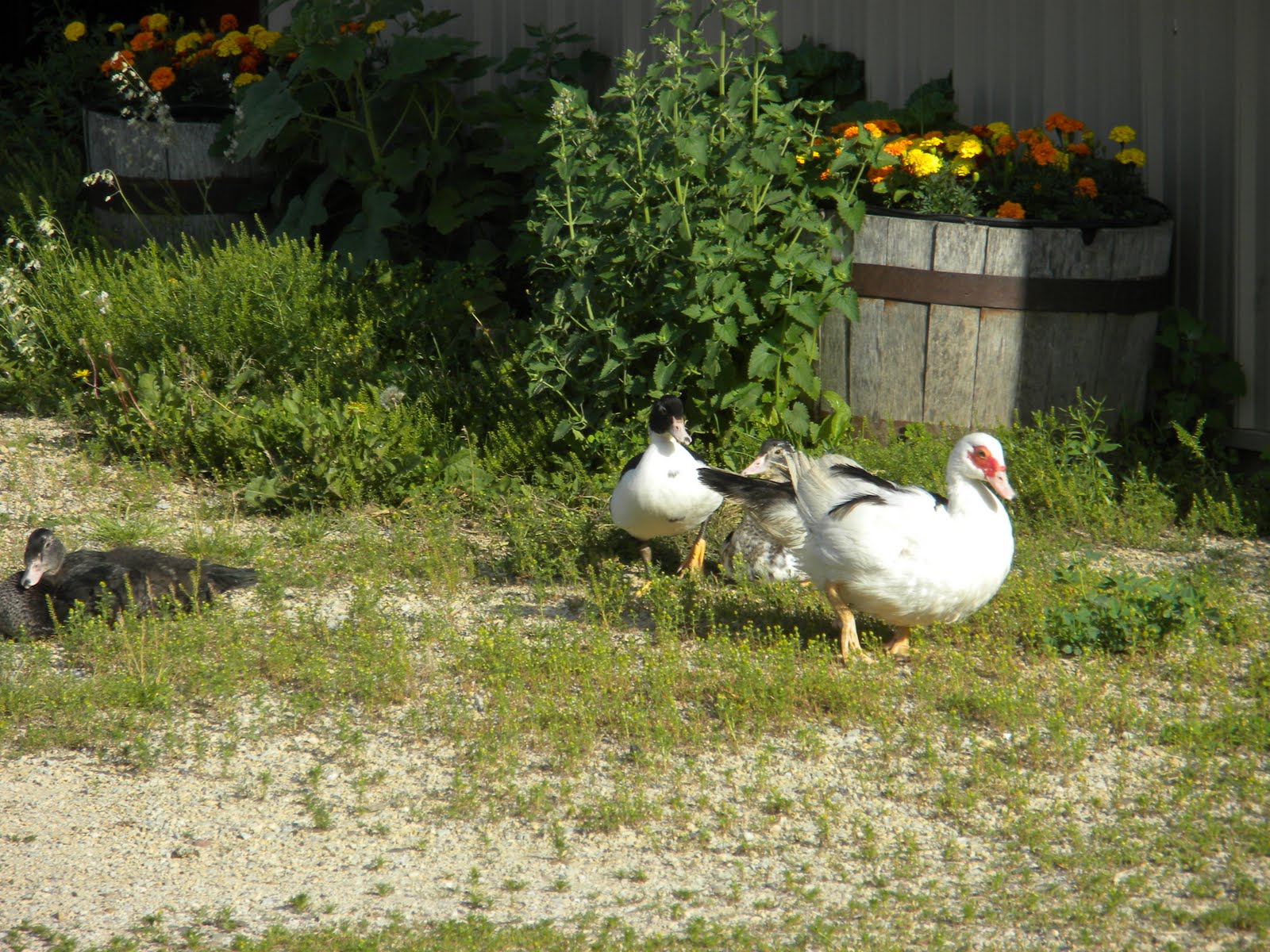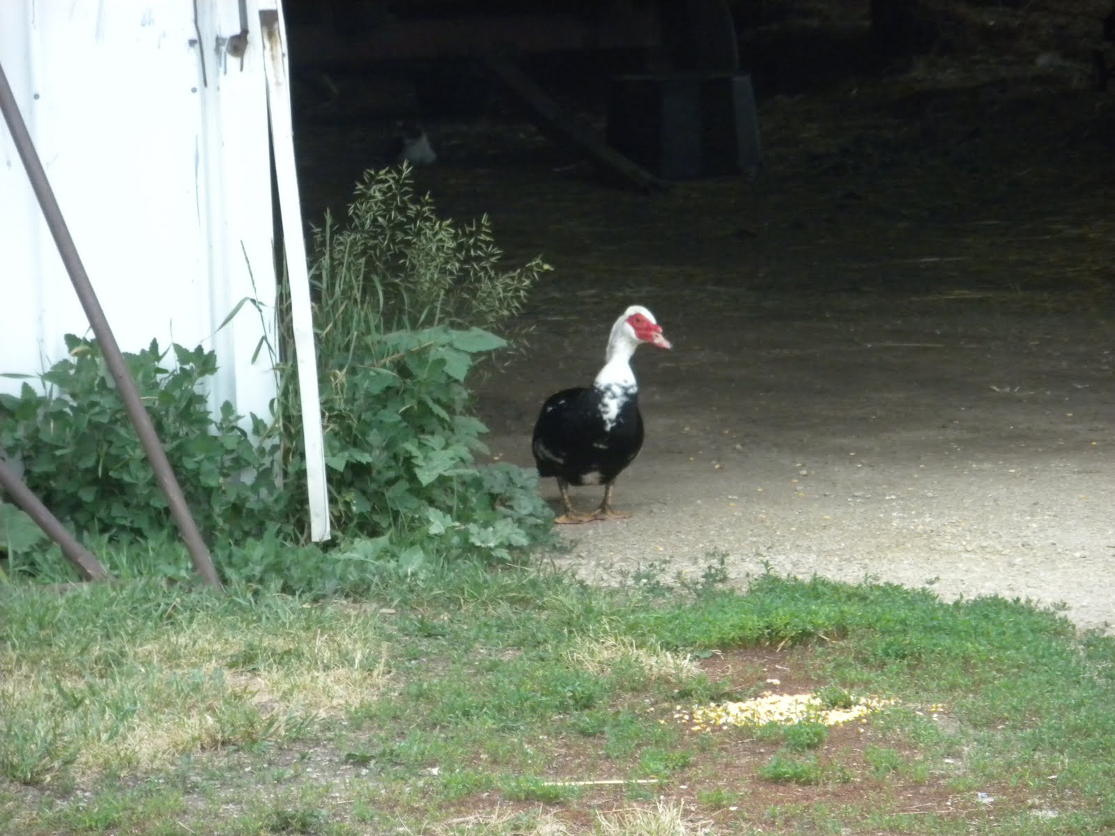 2) Mr. Bodgepie (the duck) is proving to be elusive. We drove to the neighbor's where he's been hanging out. There he was, in the entrance to a big equipment shed. We pursued him deep into the shed as he scooted under the equipment. It was dark and confusing, with all the tires, etc. We were on our hands and knees. "Do you see him?" Melissa calls. The neighbor replies from the front of the shed. "He's out here." The little @#*& had doubled back on us. Melissa approached with the net and he took flight. Clearly we're going to have to be smarter than the duck...