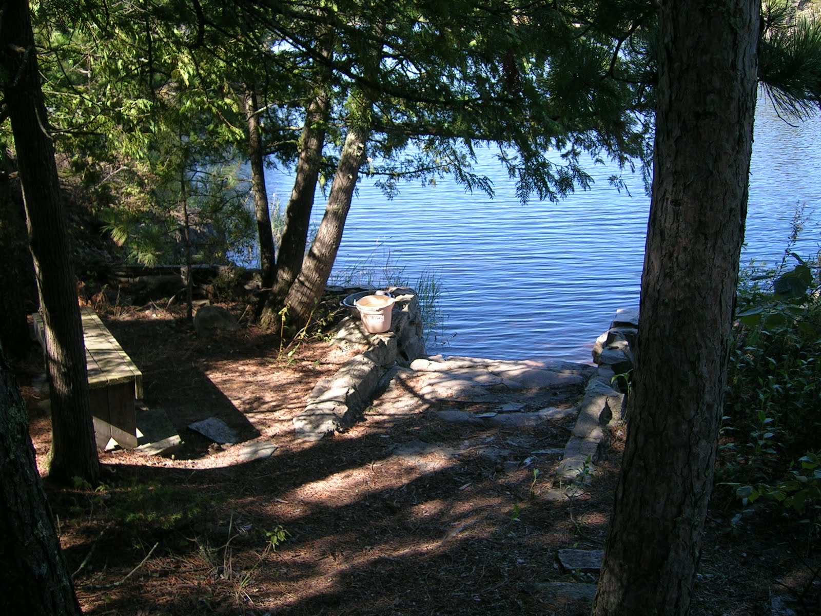 The island does not have running water, so if you want to get clean, your only choice is to jump in the lake. During heat waves, it's lovely. On a normal summer day, however...holy frijoles, it's cold. Here's the swimming beach: