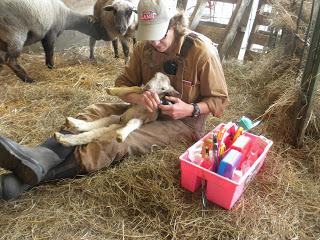 4-4:15. Change into chore clothes. Mix up milk replacer and feed bottle lamb. Check to see if any ewes are in labor. Clean out bottle and clean up kitchen. Change into regular clothes.