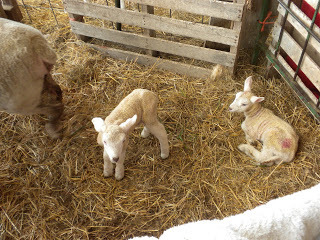 It's been two weeks since we finished lambing. (Hurrah!) Everyone's out on pasture and doing great. I tried to take a video of the two lambs I'm supplementing with bottles running toward me, and then feeding them.