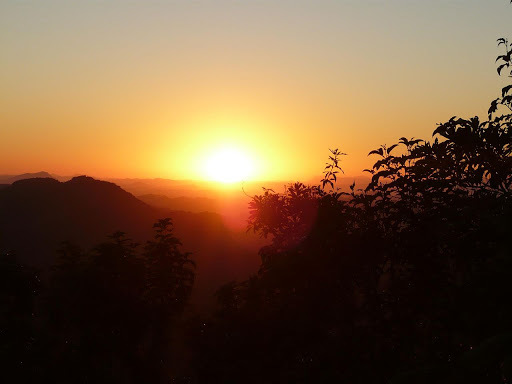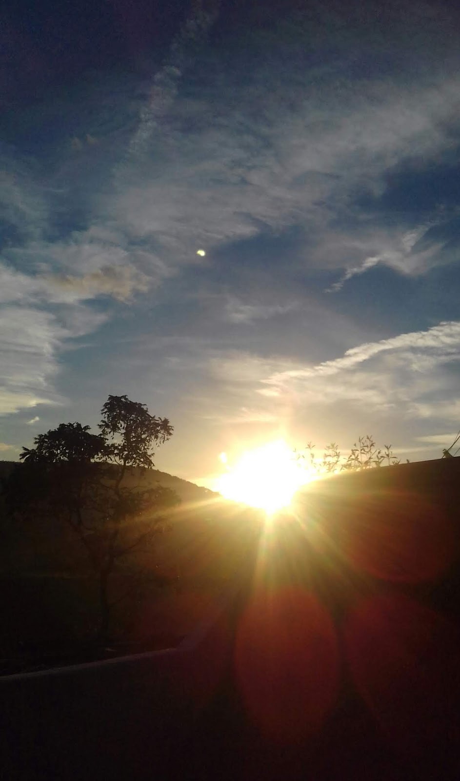 Fui até o quarto fechar a janela, e me dei conta de que o sol nasce daquele lado. Às seis horas da manhã, que é quando ela abre as janelas, ele está mostrando a carinha amarela por trás dos morros como se tivesse acordado junto com ela.