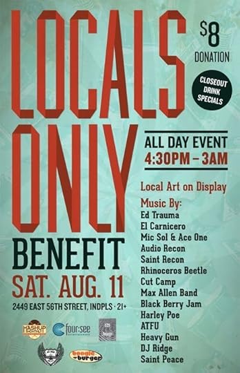 I love to promote the local art scene of Indianapolis when I can (read: whenever I’m not so swamped with work that I remember that I have a blog). Locals Only (2449 E 56th Street) will be closing their doors on August 18th. There will be a special benefit event starting August 11 at 4:30pm until 3:00am. This is a special, last time type event and all the proceeds go to the owners of Locals Only in support of their next music venture.