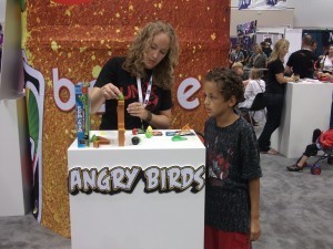 Two games in particular were big hit with my sons: Angry Birds and Mind Flex. Angry Birds is pretty much what you think it is: Jenga meets … knocking down Jenga with spongy birds. With cards dictating the structures to be built, a played launches foamy birds at the construct (the cards also dictate how many tries they get and with which type of birds).