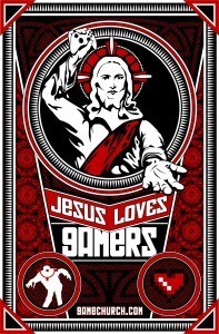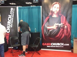 Despite what people may thin, there are a ton of Christian gamers at GenCon. The Christian Gamers Guild has a continual presence (as well as church service). A newer presence made their debut this year, creating a buzz about themselves, both positive and negative. Handing out t-shirts, popcorn, and a version of the Gospel of John written for gamers, GameChurch.com knows how to enter a room. So I sat down to chat with its founder, Mikee Bridges.