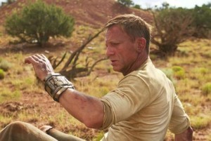 A stranger rides into town, though it opens more like Jason Bourne waking up in the middle of the New Mexico desert. The amnesia-stricken Jake Lonergan, played by Daniel Craig (Casino Royale, Quantum of Solace), reaches for a bloody wound at his side and discovers a strange bracelet cuffed to his wrist. His only clue to who he was is a tintype photograph.