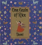 We re-read One Grain of Rice: A Mathematical Folktale by Demi, which I recalled sharing with my oldest child many years ago. The description: “A rajah who believes himself to be wise and fair uses his hungry people’s rice for himself year after year, until a village girl name Rani devises a clever plan using the surprising power of doubling to win a billion grains of rice from the rajah.” The illustrations really bring home the sheer volume of rice in question.