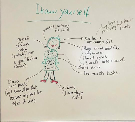 #1. Drawing a picture of yourself, and then labelling your features (that is me, above)