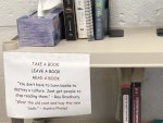 Wanna donate a book? It cannot be beat-up, and it must be something you, yourself, enjoyed reading. Don’t give me A Brief History of Time because you couldn’t get through it. Give me books that brought you joy, escape, entertainment!