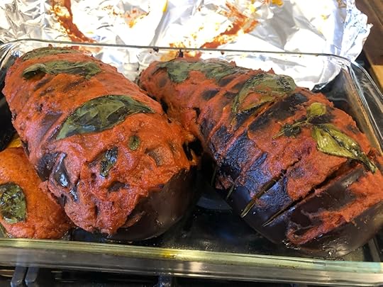 This is something that I saw on my FB feed once: someone put tomato paste and butter on eggplant slices.